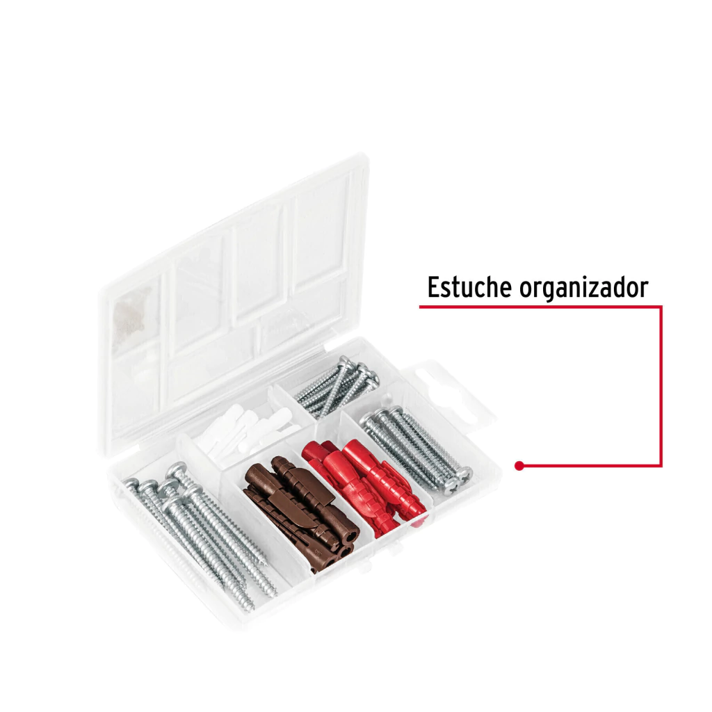 Estuche 26 taquetes 3/16", 1/4", 5/16", c/pijas #6, #8, #10